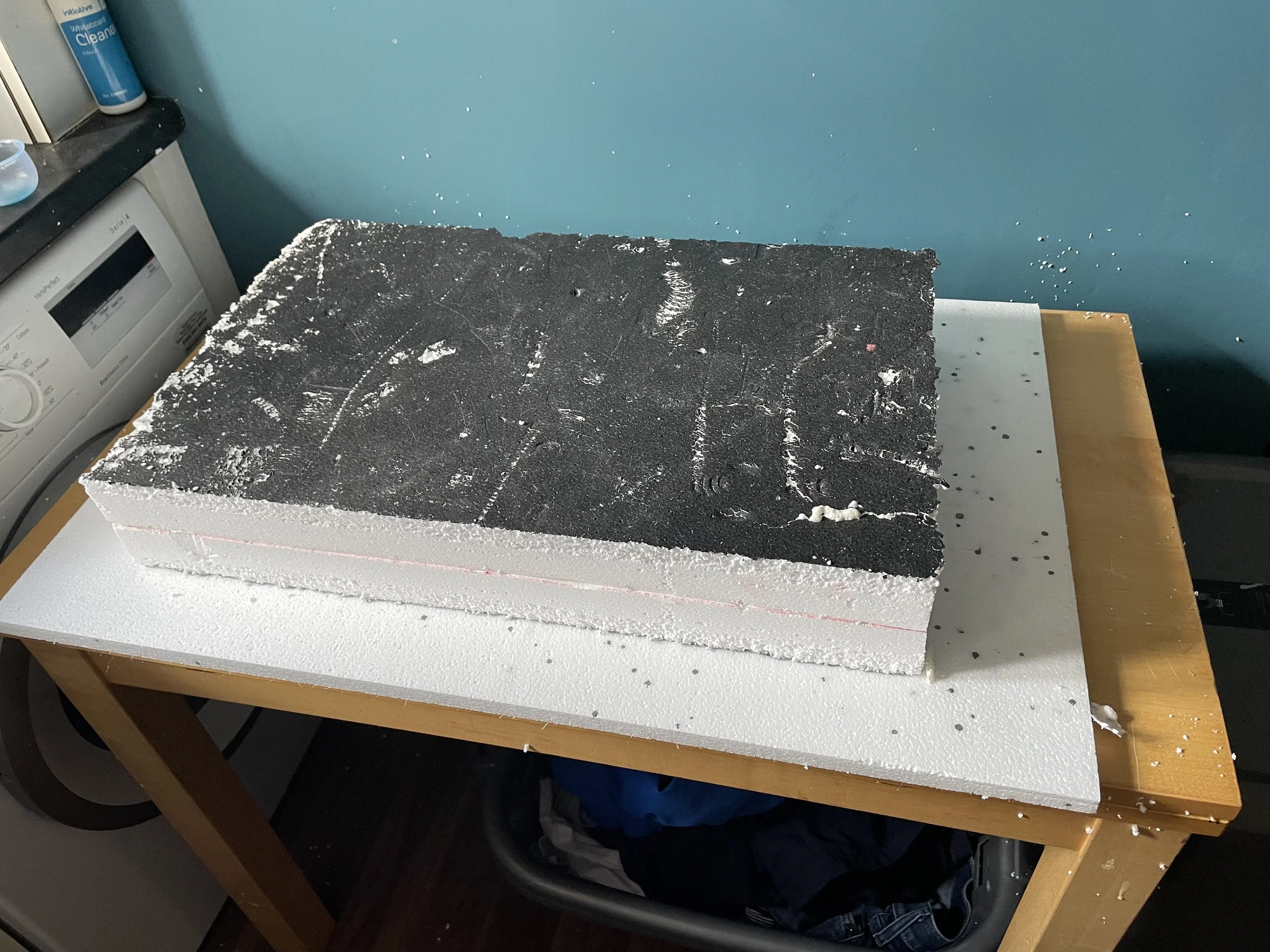 I started by building the shape by stacking layers of Polystyrene, securing them together with expanding foam.